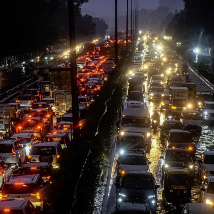 ভারী বর্ষণে কার্যত বিপর্যস্ত হয়ে পড়েছে গুরুগ্রাম। সোমবার বিকেলের পর থেকে শুরু হওয়া টানা বৃষ্টিতে শহরের একাধিক এলাকা ডুবে গিয়েছে হাঁটু বা গোঁড়ালি সমান জলে। এর ফলে সৃষ্টি হয়েছে তীব্র যানজটের। কোথাও সাত থেকে আট কিলোমিটার দীর্ঘ যানবাহনের লাইন তৈরি হয়েছে, যেখানে ঘণ্টার পর ঘণ্টা আটকে থাকতে হচ্ছে যাত্রীদের। রাস্তায় গাড়ি ঘোরানো বা বিকল্প রাস্তা নেওয়ার সুযোগও নেই।